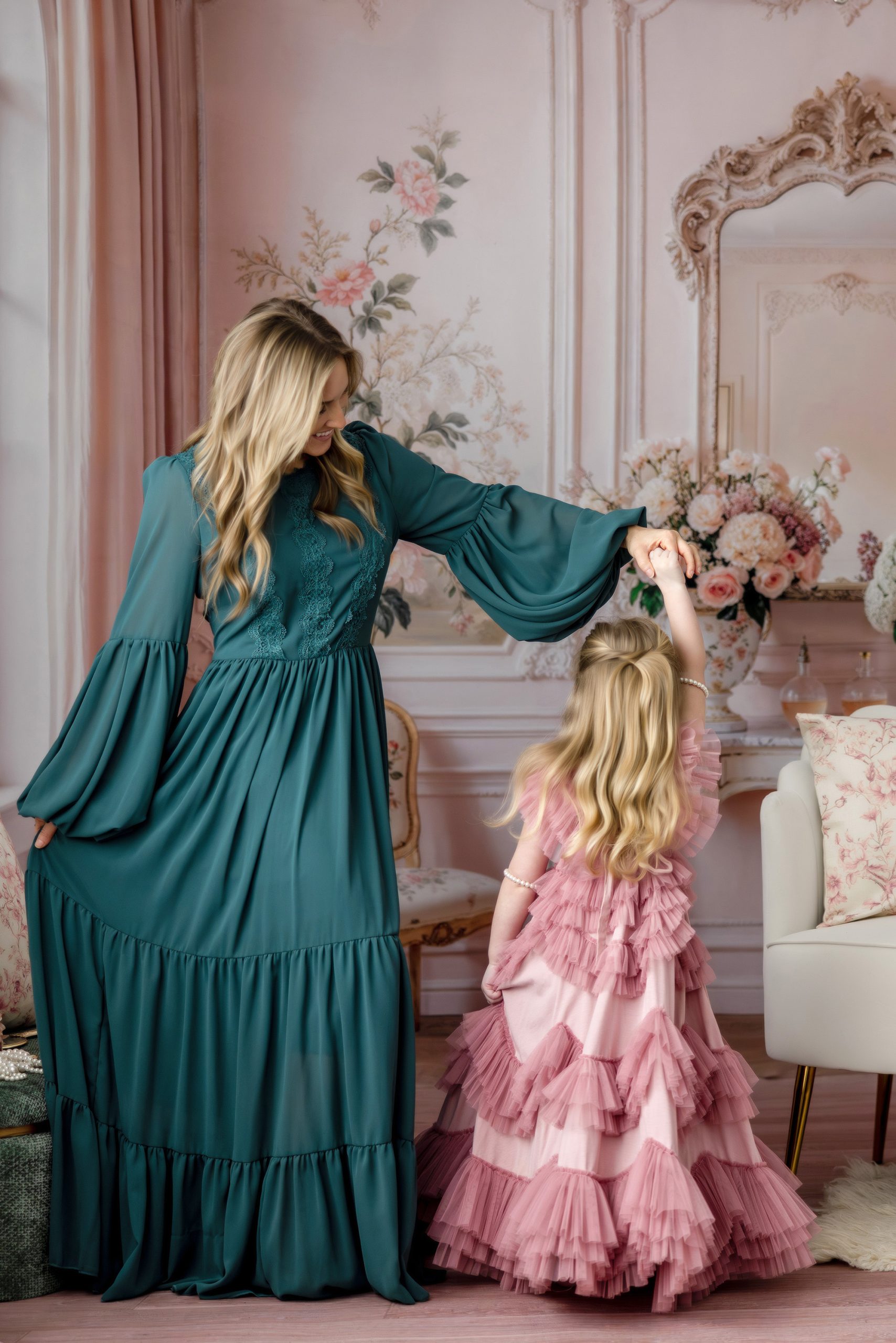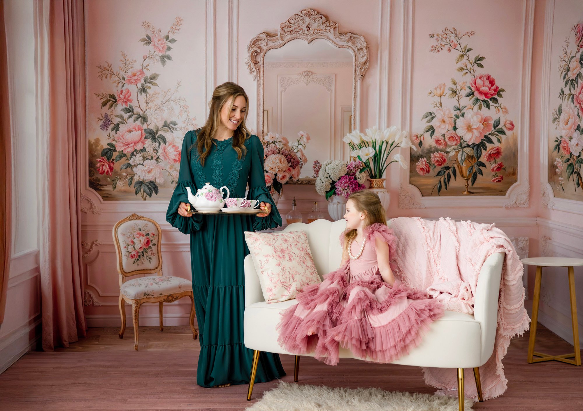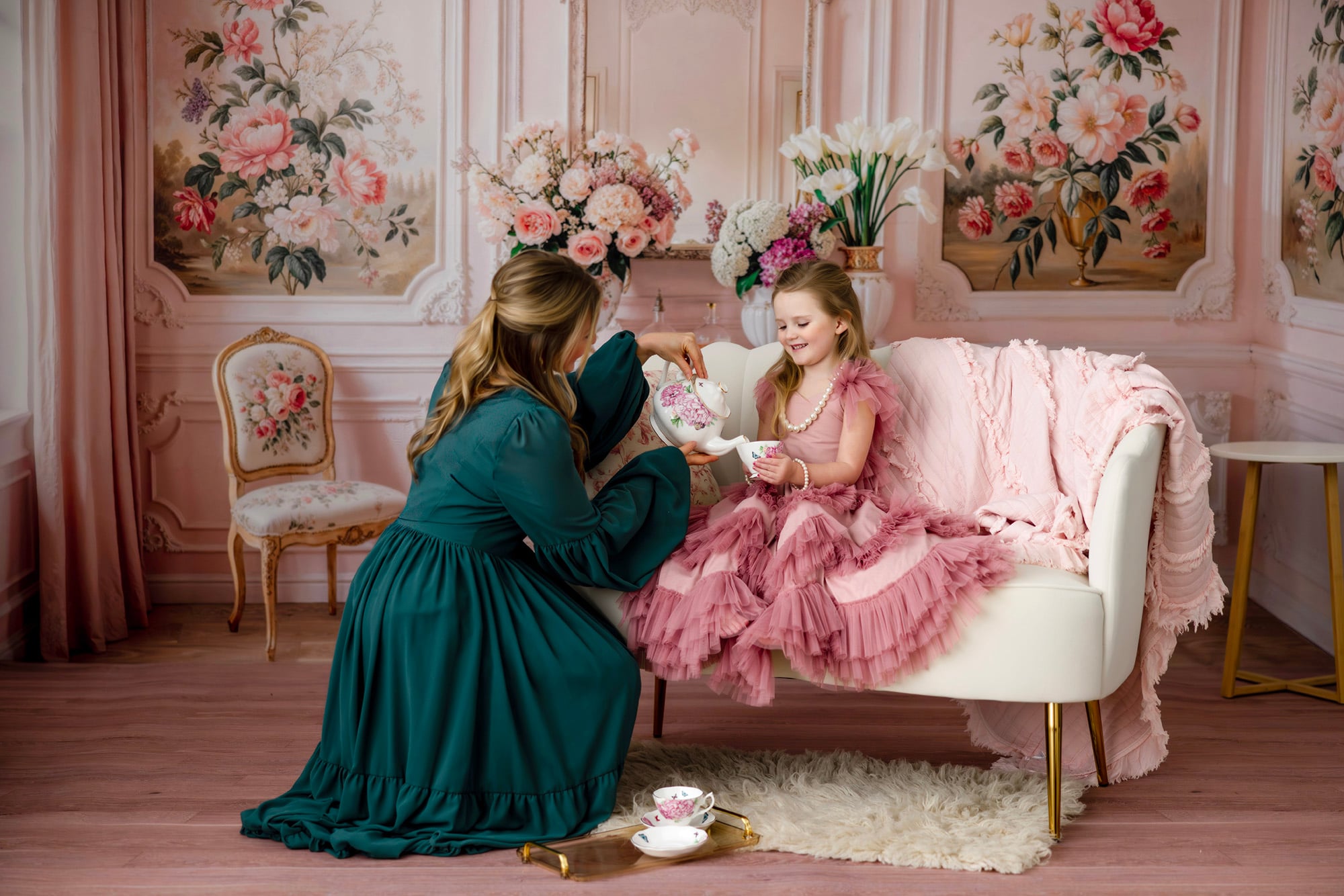Soft conversations, gentle laughters, and the unspoken bond between a mother and her child. Come join me in a dreamy, beautiful floral, classic storybook scenery. We will capture the adorable snuggles, dancing, tea party and more.